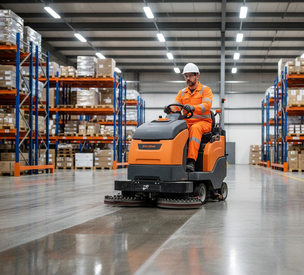 Our trained technicians operate industrial floor scrubbers and specialized maintenance machinery following rigorous OSHA safety guidelines for cleaning operations.